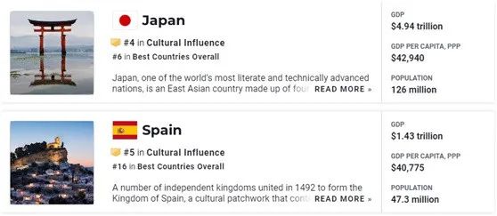 西班牙、日本榮登“全球文化影響力排名”TOP 5!