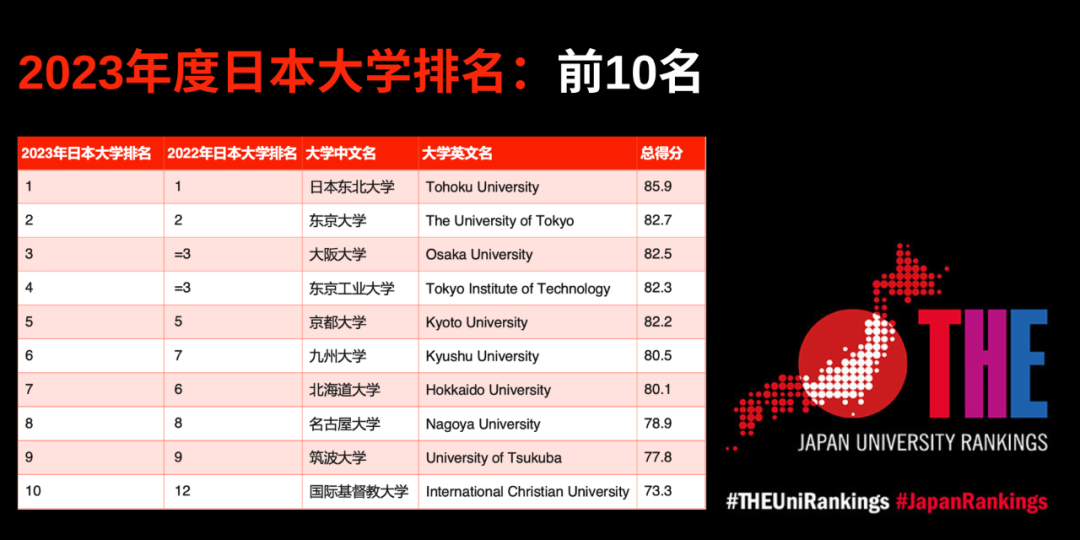 2023年度泰晤士高等教育日本大學(xué)排名出爐,東北大學(xué)連續(xù)四年位列第一!