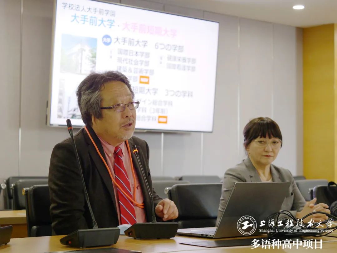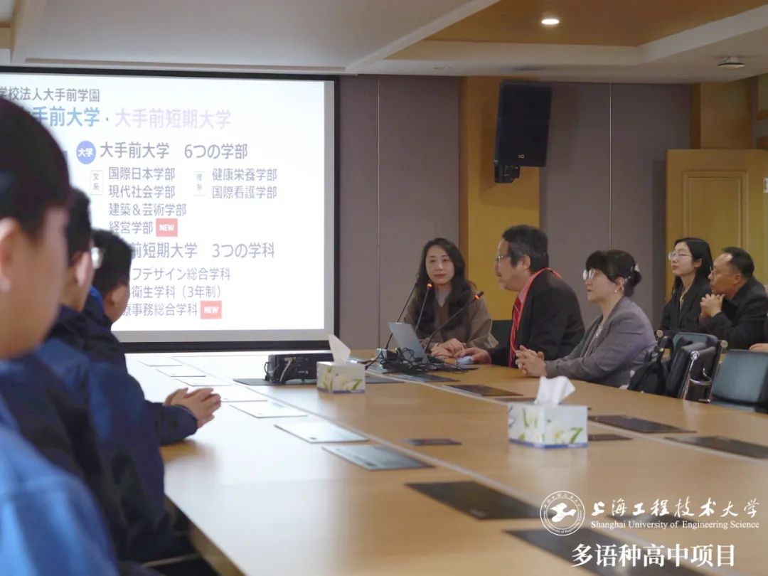 2024年3月22日上午,日本大手前大學的教授們來到上海工程技術大學多語種高中項目舉辦講座。日語班的同學們在校門口迎接高橋教授和日本國際學部的負責人恩塚老師,并且對兩位老師的到來表示了熱烈的歡迎。