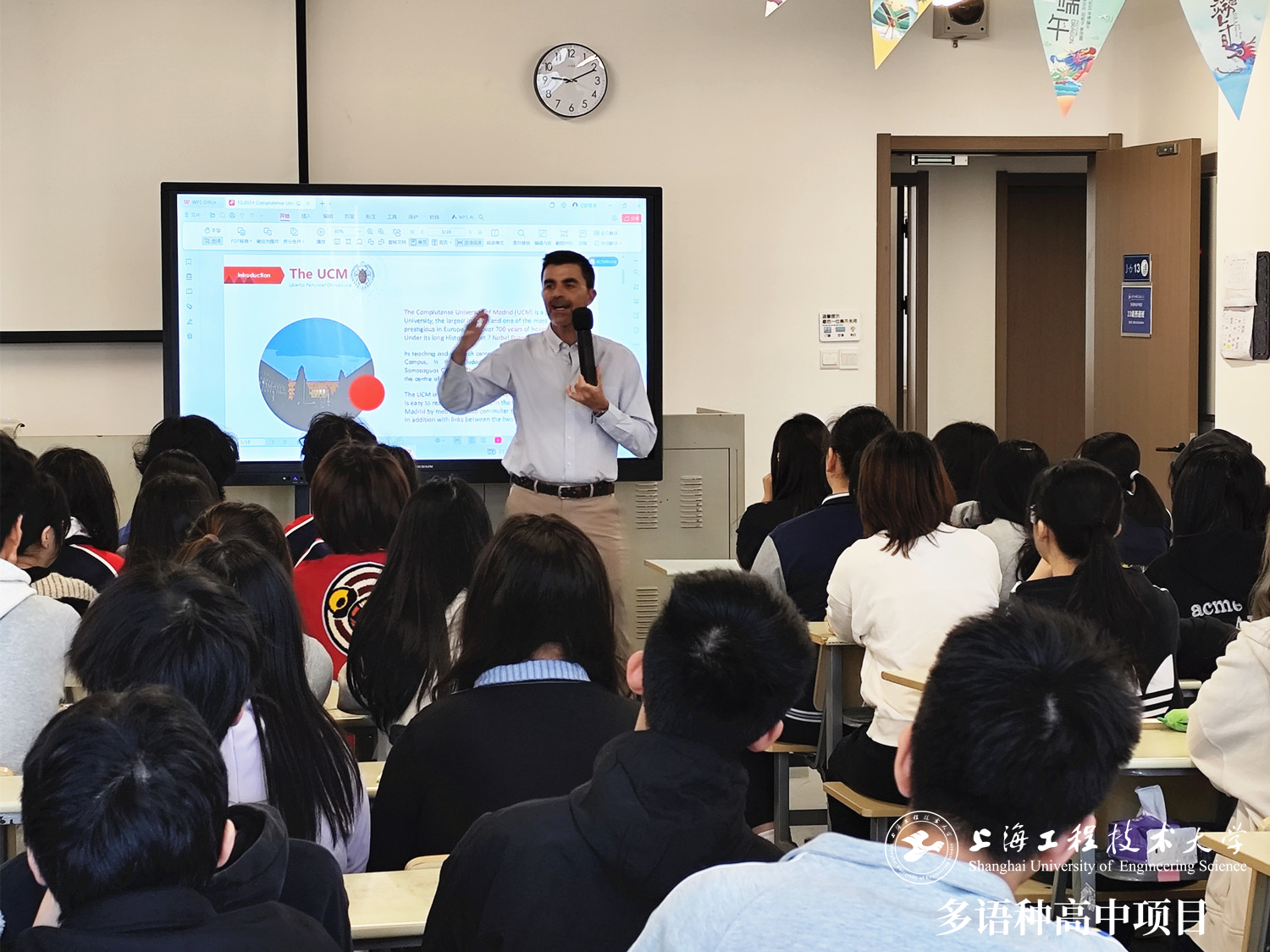 近日,西班牙公立康普頓斯大學(UCM)國際推廣代表及中國項目負責人Juan Carlos先生蒞臨上海工程技術大學多語種高中項目,為我校師生開展了一場升學講座。