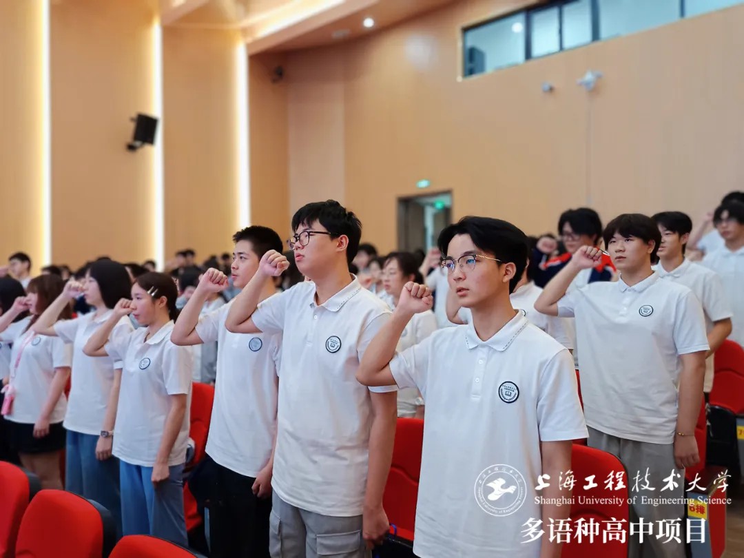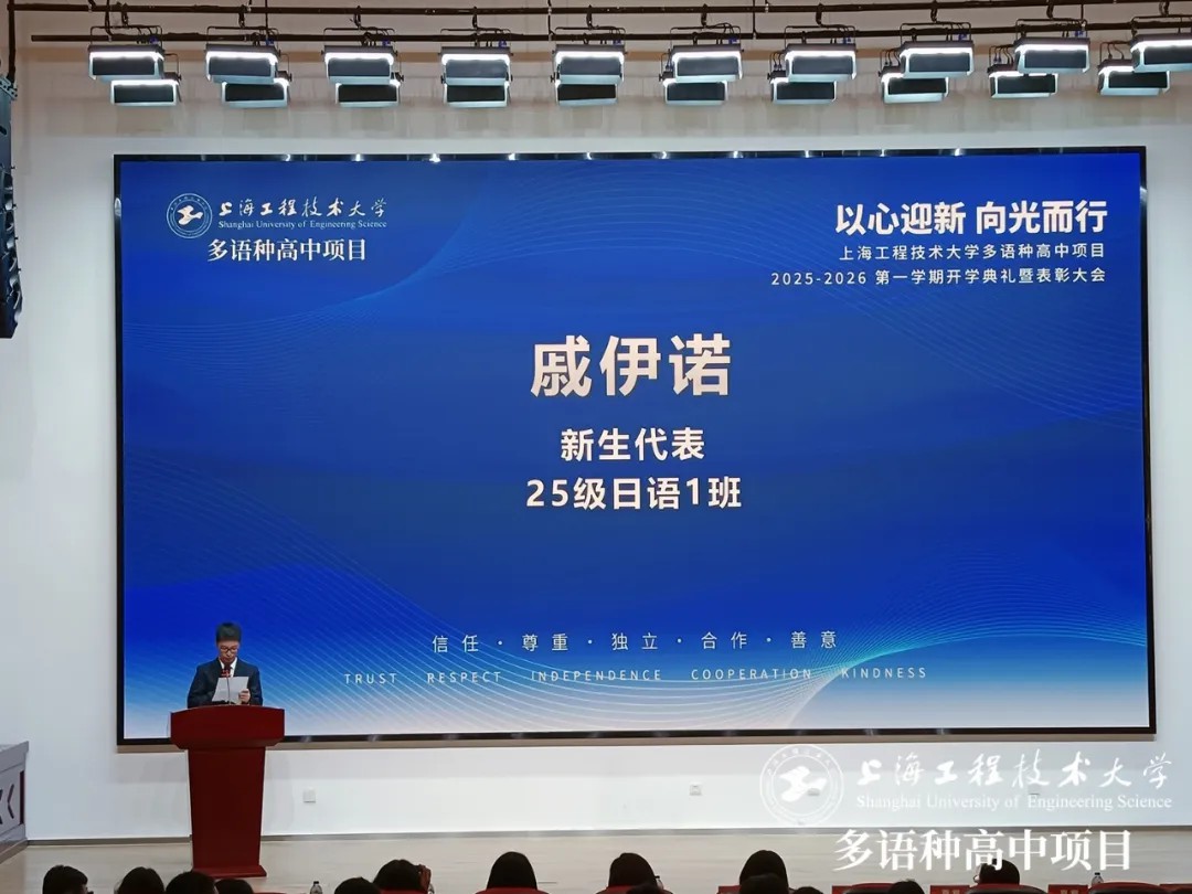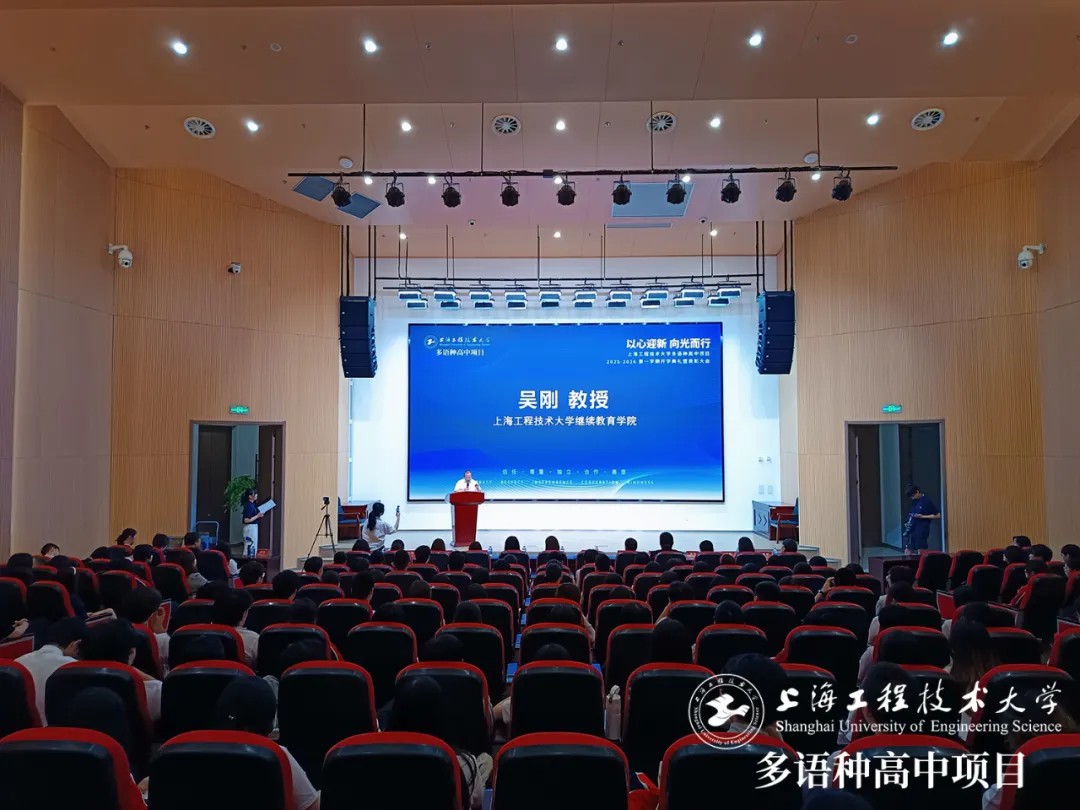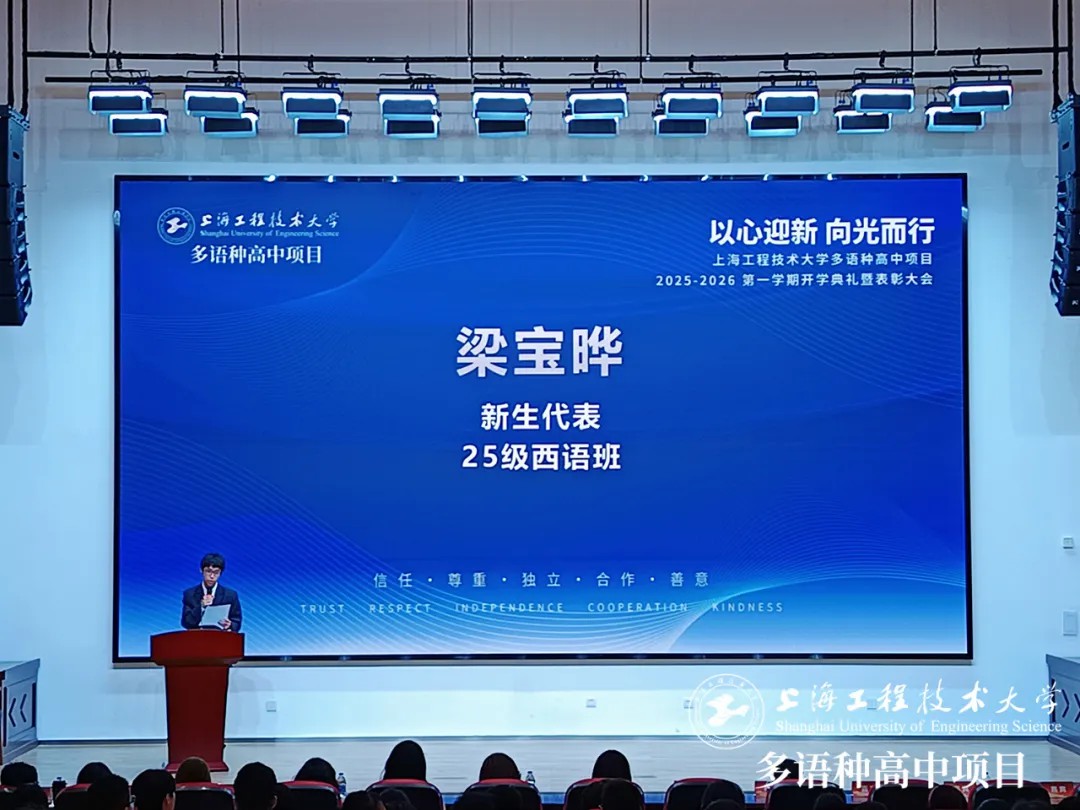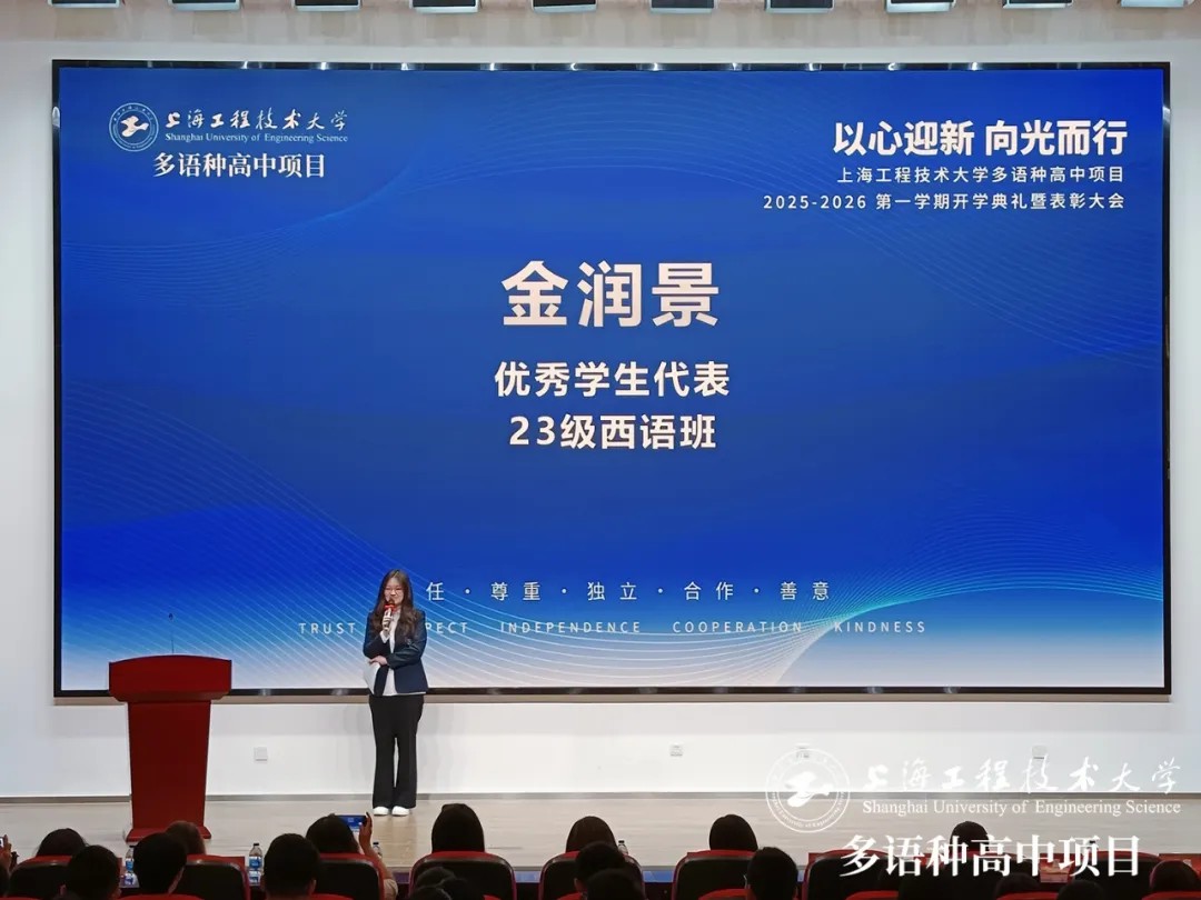 9月12日上午,上海工程技術大學多語種高中項目2025-2026學年第一學期開學典禮暨表彰大會在產教融合大樓一樓報告廳成功舉辦。