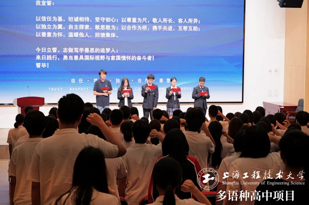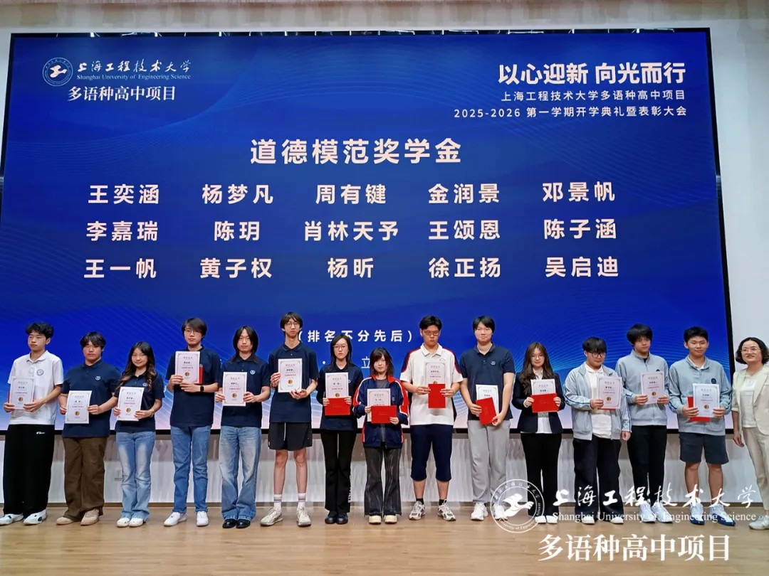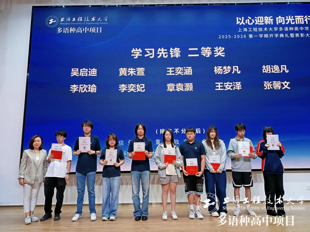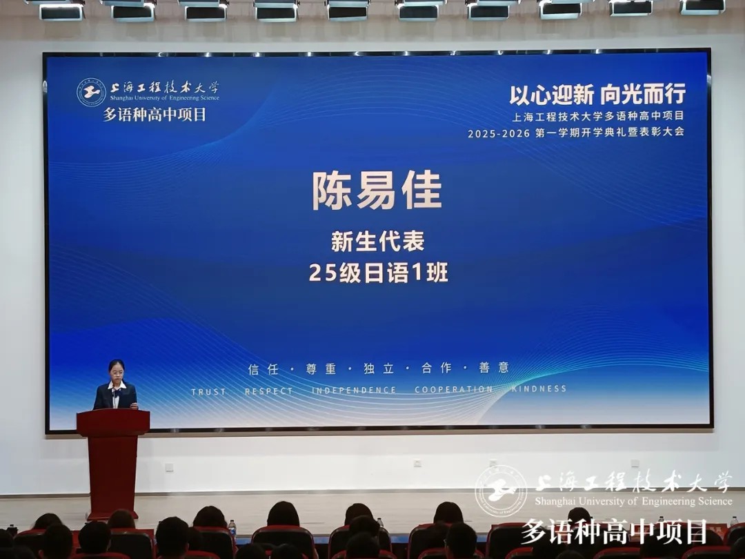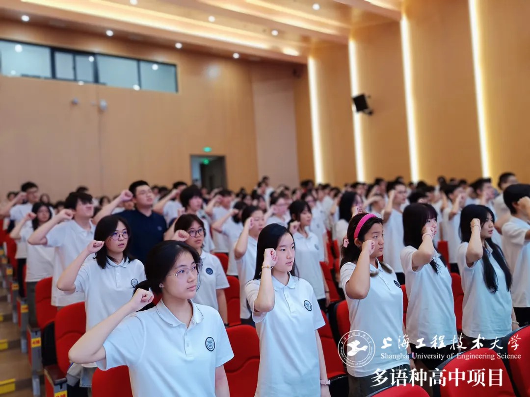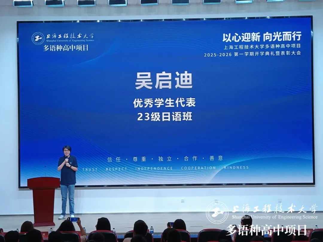 9月12日上午,上海工程技術大學多語種高中項目2025-2026學年第一學期開學典禮暨表彰大會在產教融合大樓一樓報告廳成功舉辦。