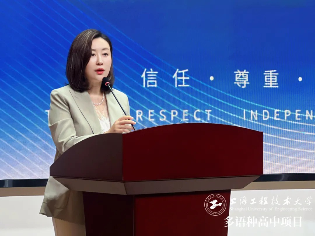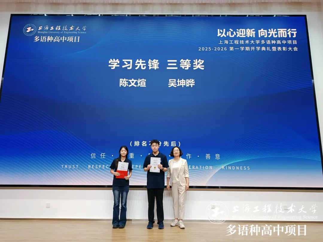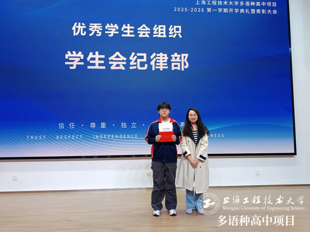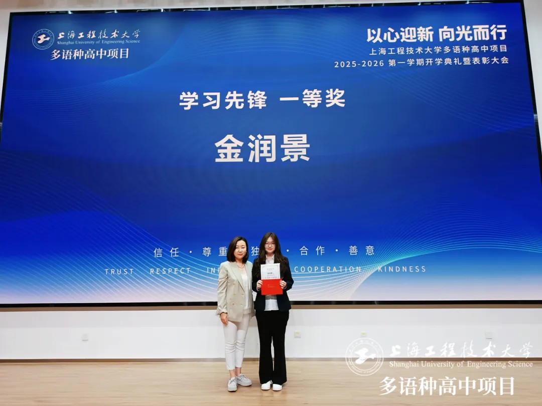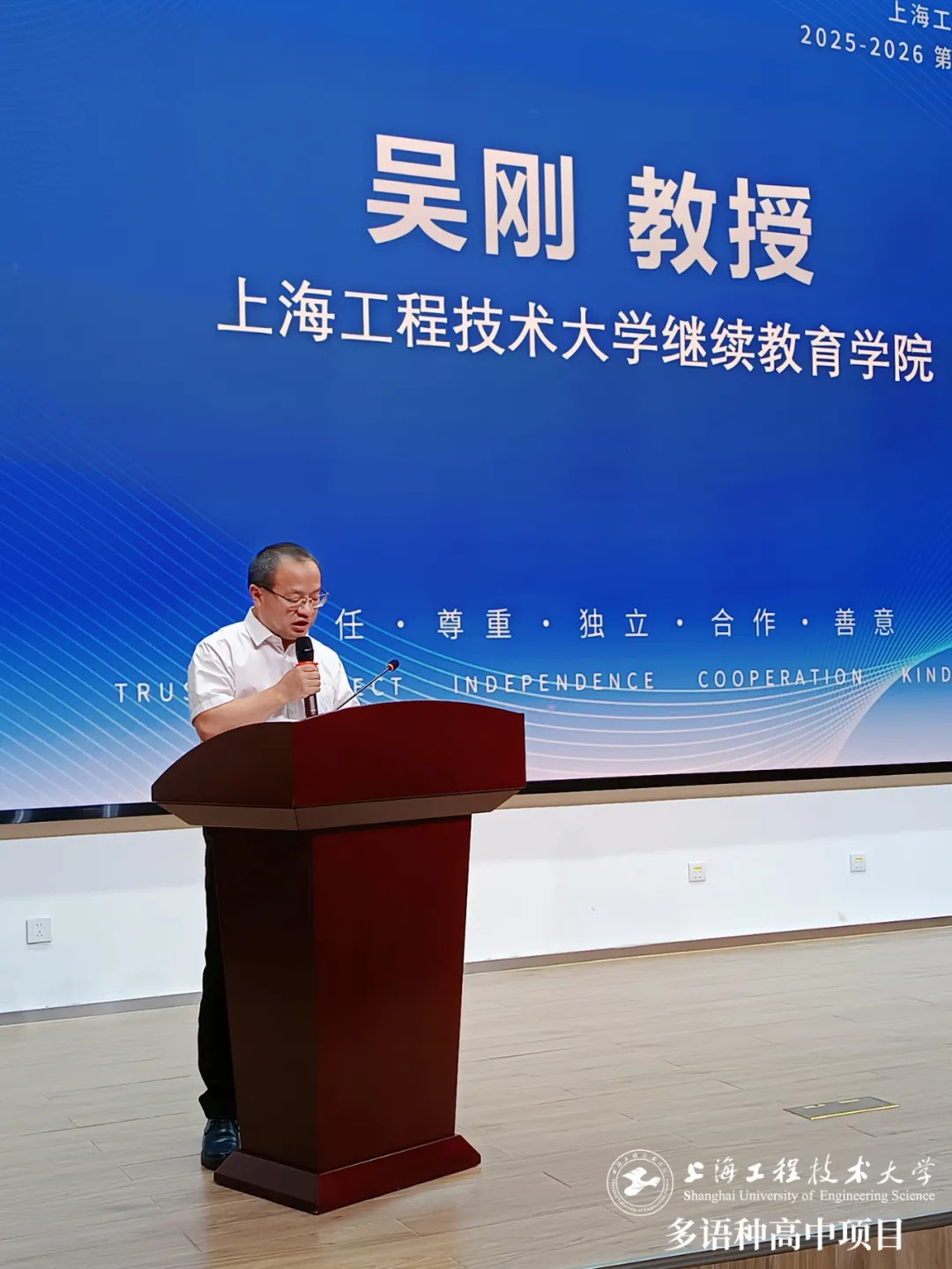 9月12日上午,上海工程技術大學多語種高中項目2025-2026學年第一學期開學典禮暨表彰大會在產教融合大樓一樓報告廳成功舉辦。