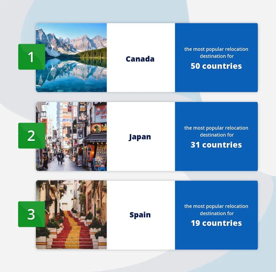 在最新的全世界最想移民國(guó)家排名中:日本和西班牙同樣取得了引人注目的好成績(jī),日本排在第二名、西班牙全球第三!