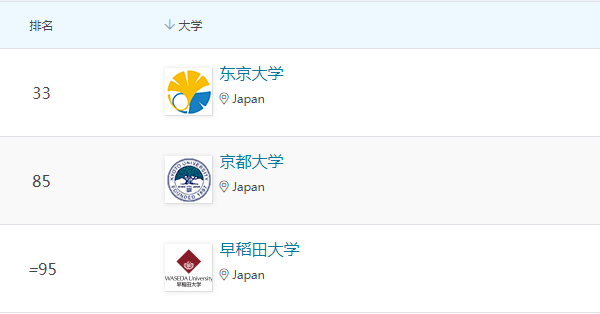 在社會科學與管理領域,東京大學、京都大學、早稻田大學位列全球百強。
