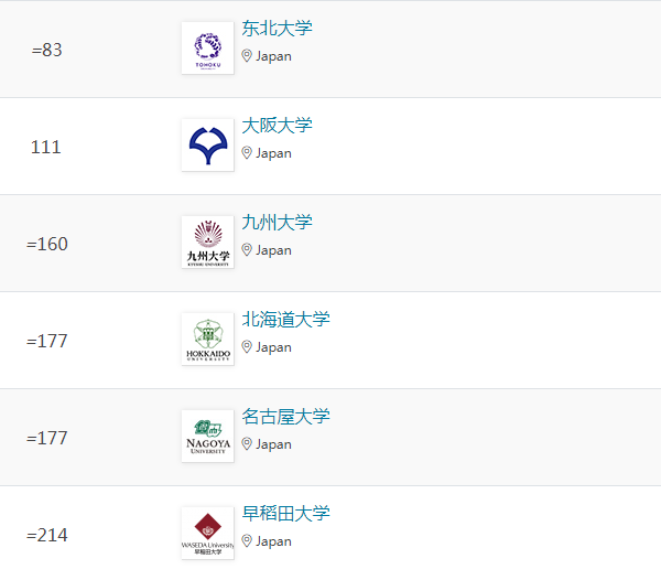 在工程與技術領域,東京大學、東京工業大學、京都大學、東北大學位列全球百強。