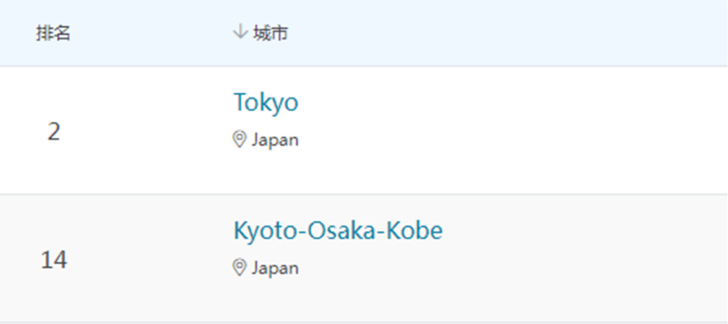 根據最新的2024 QS世界最佳留學城市排名:日本東京位列全球第2!除了東京,日本的京都-大阪-神戶也進入榜單,位列全球第14名。