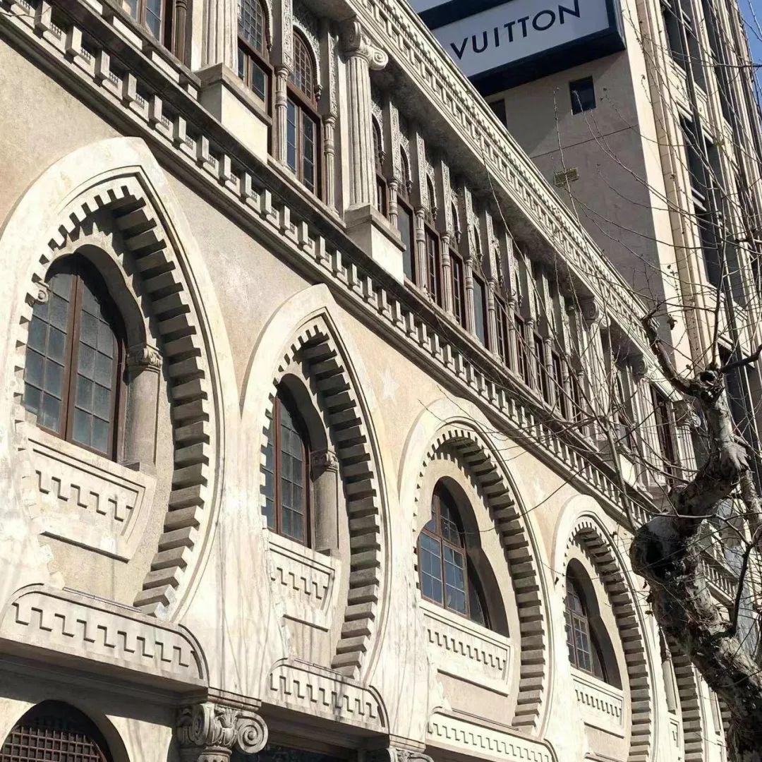 英國汽車商行位于上海市靜安區南京西路702號,原為飛星公司,此建筑由拉佛恩特和伍騰設計1917年建造,西班牙伊斯蘭式與新古典主義結合,立面三層均采用馬蹄形,連續拱柱廊構圖。
